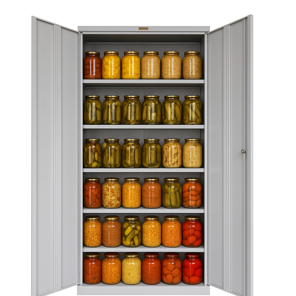 Każdy, kto przygotowuje własne zapasy na zimę, wie jak szybko zaczyna brakować miejsca na słoiki. Dżemy, konfitury, kompoty czy marynowane ogórki piętrzą się na półkach, a w piwnicy robi się bałagan. Właśnie dlatego szafa na słoiki AM świetnie sprawdza się jako praktyczna szafa do spiżarni zamknięta w solidnej metalowej obudowie.