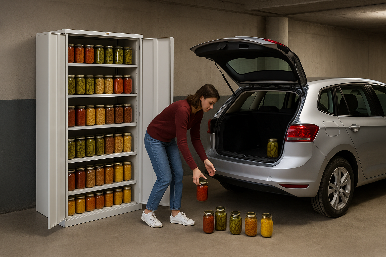 Metalowa szafa do garażu i spiżarni – idealna na słoiki, przetwory i zapasy