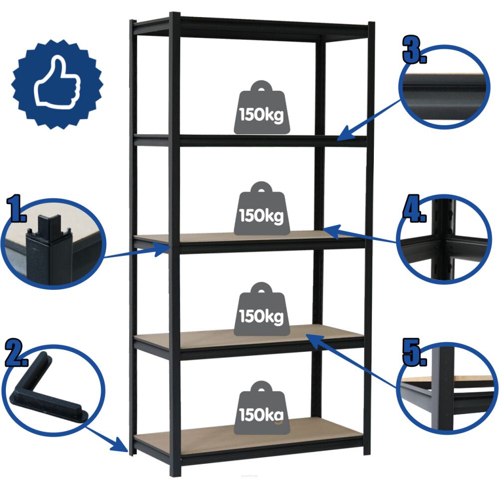 ☑️ Metalowe i wytrzymałe półki, do 150 kg!
