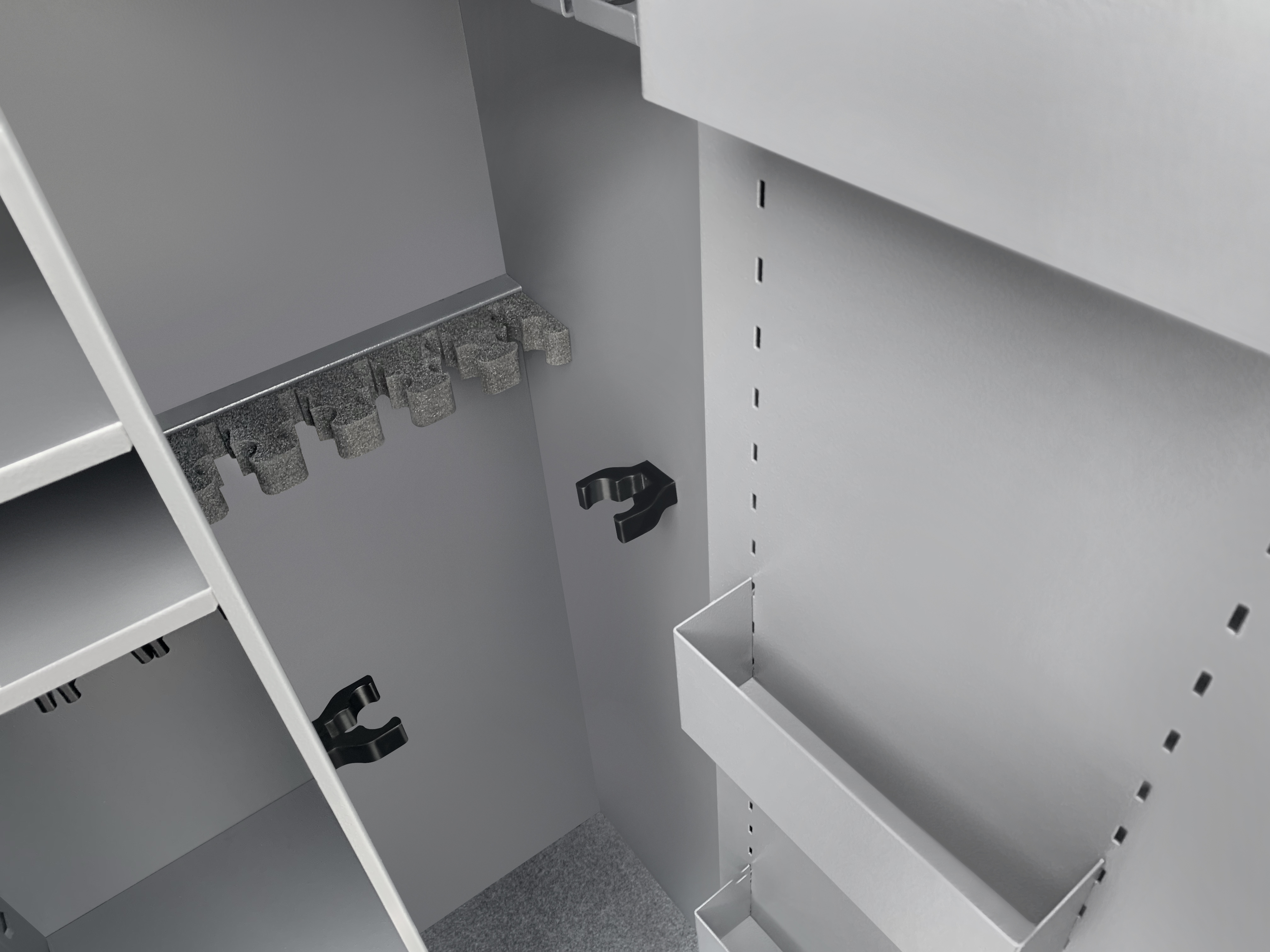 Tradycyjne sejfy często ograniczają długość broni przez umieszczony na wysokości treyzer (skarbczyk na amunicję). W Arsenał 1454 kl. S1 zastosowano sprytne rozwiązanie: skarbczyk został specjalnie cofnięty i zintegrowany w taki sposób, aby stworzyć wolną przestrzeń z tyłu. Dzięki temu lufa Twojej długiej broni może swobodnie przechodzić za skarbczykiem!