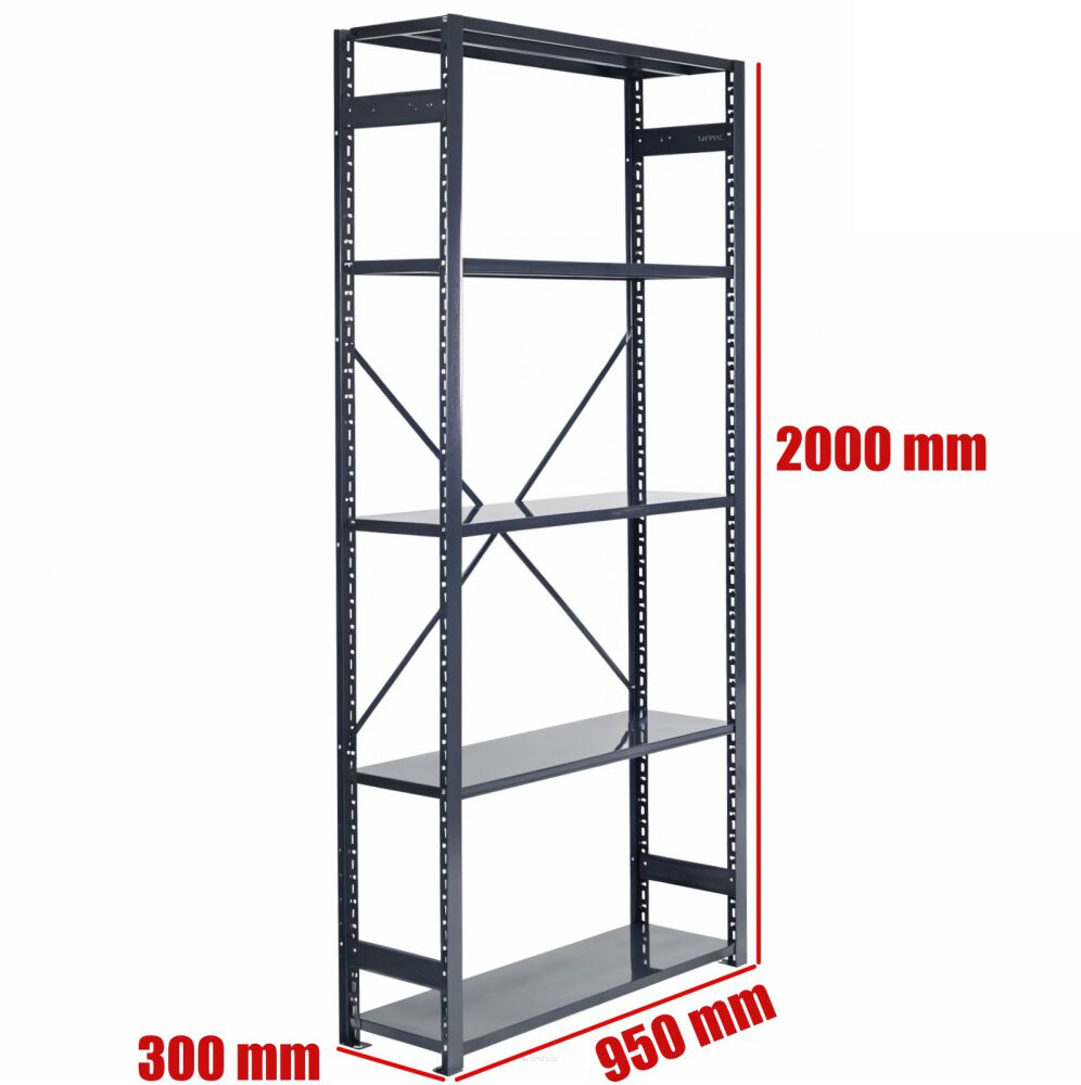 REGAŁ METALOWY ANTRACYT 200x95x30 5 PÓŁKI