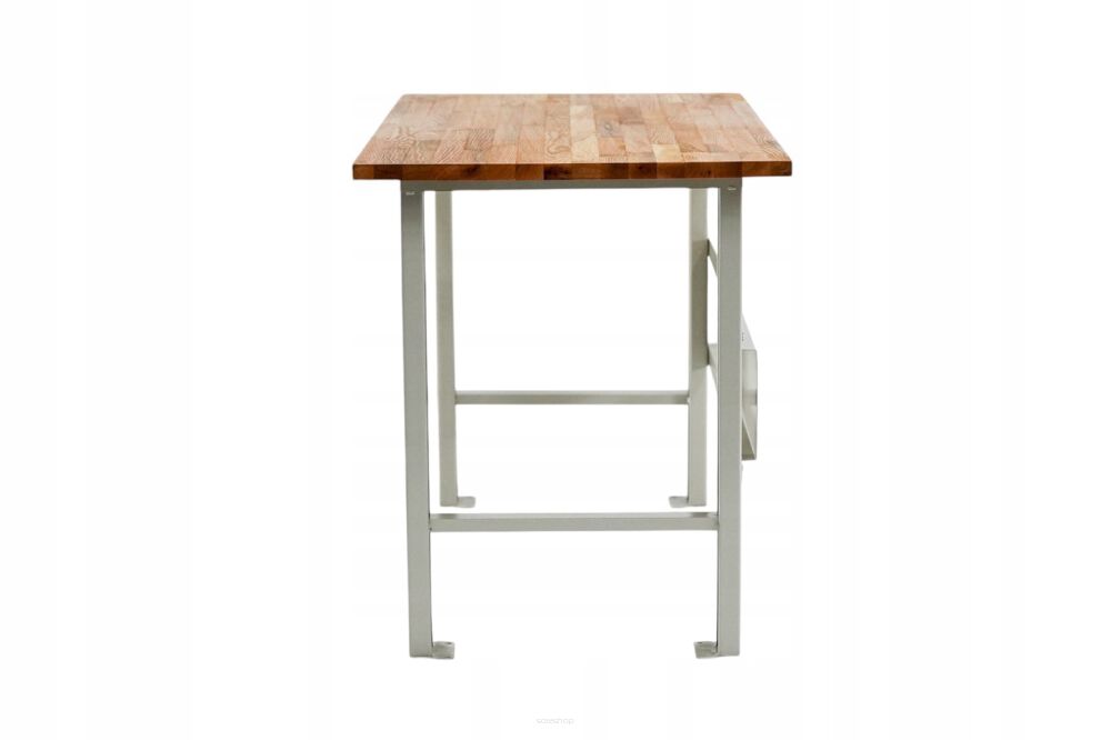 Mocna rama wykonana z kształtowników stalowych zapewnia wyjątkową trwałość, a blat z litego drewna dębowego o grubości 30 mm gwarantuje odporność na uszkodzenia i wygodę użytkowania. Blat zabezpieczono obustronnym lakierowaniem, co chroni przed wilgocią, zabrudzeniami i zarysowaniami. Całość uzupełniają elementy metalowe malowane proszkowo w kolorze RAL7035 (bardzo jasny szary), które nadają stołowi estetyczny i profesjonalny wygląd oraz zwiększają jego żywotność.