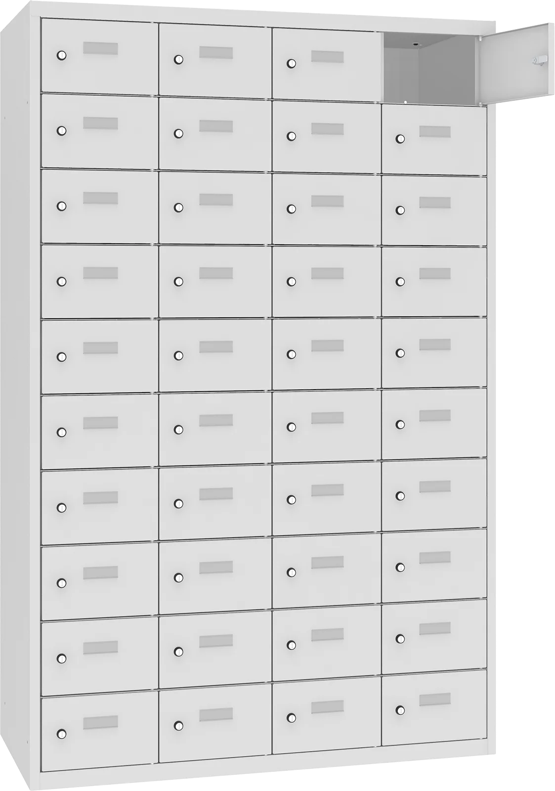 Szafka MSUS 3410 wyposażona jest w 40 niezależnych skrytek, rozmieszczonych w układzie 4 kolumn, po 10 skrytek w każdej. Dzięki temu umożliwia przechowywanie dużej liczby rzeczy jednocześnie, co jest szczególnie przydatne w firmach i placówkach, gdzie z szafki korzysta wiele osób.