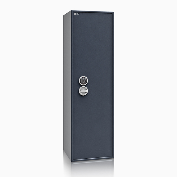 Szafa na broń SIEGEN MAX KOMBI S1 IMP (Art. Nr 500083.50) to certyfikowany sejf przeznaczony do bezpiecznego przechowywania broni myśliwskiej oraz szeroko rozumianej broni sportowej. Sejf posiada odporność na włamanie w klasie S1 wg normy EN 14450 (certyfikowane w IMP), a także spełnia wymagania Rozporządzenia Ministra Spraw Wewnętrznych z dnia 26 sierpnia 2014 r. w sprawie przechowywania, noszenia oraz ewidencjonowania broni i amunicji, co czyni go odpowiednim wyborem dla użytkowników prywatnych, myśliwych oraz strzelców sportowych. Cechą szczególną serii Siegen MAX KOMBI S1 IMP jest umieszczona na środku przegroda, która pozwala na indywidualne i praktyczne wykorzystanie wnętrza sejfu, dopasowane do własnych potrzeb. Dzięki możliwości przestawiania półek oraz uchwytów na broń można w pełni spersonalizować układ wnętrza i wygodnie przechowywać broń o różnej wysokości. Sejf standardowo wyposażony jest w 4 funkcjonalne półki z regulacją wysokości, które umożliwiają dopasowanie przestrzeni użytkowej do przechowywanych przedmiotów oraz akcesoriów. Dodatkowym udogodnieniem jest listwa hakowa umieszczona po wewnętrznej stronie drzwi, idealna do zawieszania kluczy, lornetki oraz innych przedmiotów codziennego użytku. Dzięki nowej konstrukcji płyty osłonowej drzwi, zastosowano także przestawne półki montowane na drzwiach, które nie zabierają przestrzeni wewnątrz sejfu. Model posiada dwa rzędy uchwytów na broń, a innowacyjne uchwyty montowane są na metalowej szynie mocowanej na magnes, co umożliwia ich ustawienie na dowolnej wysokości na tylnej ścianie lub na ścianach bocznych. Uchwyty na przestawnych szynach dostępne są w dwóch rozstawach pianek: 55 mm oraz 65 mm, a dodatkowo mają możliwość regulacji na wysokość i głębokość sejfu. Zastosowany podział szyny na broń zwiększa wygodę i bezpieczeństwo użytkowania, ponieważ nawet krótsza broń może być stabilnie i prawidłowo umieszczona wewnątrz sejfu. Uchwyty mocowane na magnesach mogą również służyć do przechowywania broni krótkiej. Szafy z tej serii zostały dodatkowo wyposażone w przestawne zawieszane pojemniki, ułatwiające organizację wnętrza, a całość uzupełnia piankowy dywanik na dnie sejfu, chroniący broń i akcesoria przed zarysowaniami. Konstrukcja sejfu jest solidna i trwała – korpus jest jednościankowy, natomiast drzwi dwuściankowe, a bezpieczeństwo zapewnia 4-stronne ryglowanie, w tym od strony zawiasowej zastosowano profil zachodzący. Sejf zamykany jest zamkiem kluczowym VdS Klasa I / IMP Klasa A, standardowo w komplecie znajdują się dwa klucze o długości 65 mm. Zastosowano metalowe pokrętło wystające 12 mm, zawiasy są wewnętrzne, a kąt otwarcia drzwi wynosi 90°. Możliwy jest stabilny montaż sejfu dzięki otworom: 2 w dnie oraz 2 w tylnej ścianie.