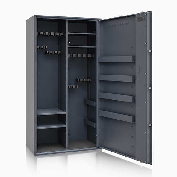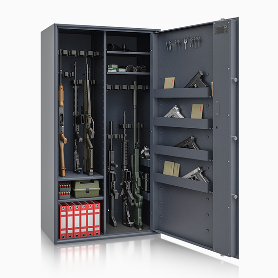Siegen MAX KOMBI S1 IMP to solidna i nowoczesna szafa na broń długą i krótką, przeznaczona do bezpiecznego przechowywania broni myśliwskiej oraz sportowej. Sejf posiada klasę odporności na włamanie S1 zgodnie z normą EN 14450 i jest certyfikowany w IMP, co czyni go idealnym wyborem dla wymagających użytkowników.